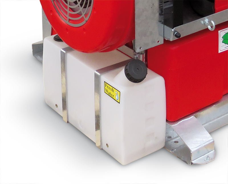 Sie kann zwei große Sprühlanzen speisen. - Tank 300 Liter, Polyethylen HD, rote Farbe algenbeständig, geformt für minimalen Raum.