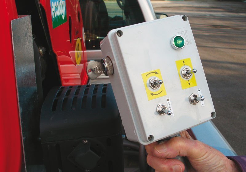 Vollständige Steuerung per Knopfdruck vom Fahrersitz aus (Motorstart, schrittweise Beschleunigung und Motorstopp, Öffnen-Schließen-Sprühabgabe, Kanonenausrichtung).